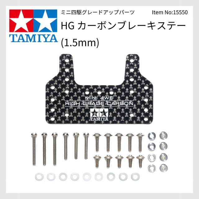 ブランド:TAMIYA Item No:15550 【商品内容】 HG カーボンブレーキステー (1.5mm) 15550 HG CARBON BRAKE STAY (1.5mm) 【 マシンのセッティングや性能アップに役立つパーツです 】 アップダウンのあるコースでは欠かせないブレーキセッティング。ブレーキスポンジを貼る面積が大きく、ローラーと干渉しにくい形状のカーボン製ブレーキステーです。 マスダンパーなどが取り付けられる多くの穴を開けているのが特徴。軽く強度の高いカーボンプレートは独特なパターンがレーシングムードを高め、タミヤマークや製品ロゴをホワイトで印刷しました。別売のブレーキスポンジを貼って使います。マシンの前後に使用可能。 ME、MA、MS、VZ、FM-A、AR、VS、スーパーII/X/XX/TZ-Xシャーシ各車に取り付けできます。 ※印刷が取れるため、クリーナー等は使わないでください。 【 基本スペック 】 1.5mm厚カーボン製ステーに加えて、取り付け用ビスやアルミカラーなどもセット 【 使用可能シャーシ 】 ME、MA、MS、VZ、FM-A、AR、VS、スーパーII / X / XX / TZ-X シャーシ