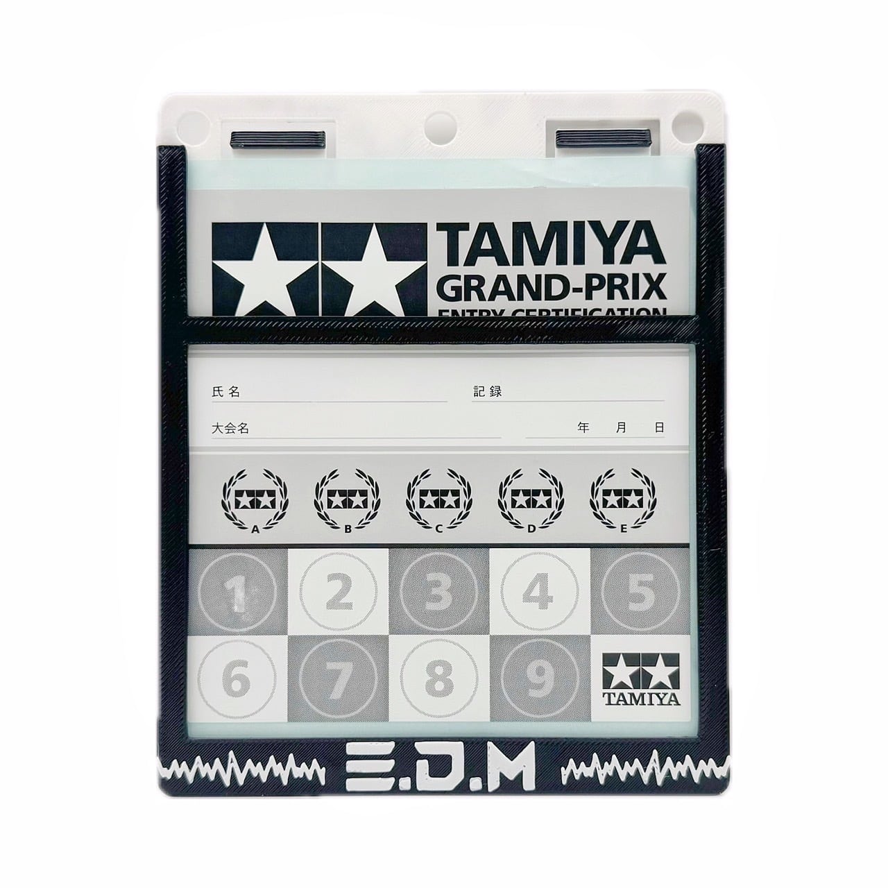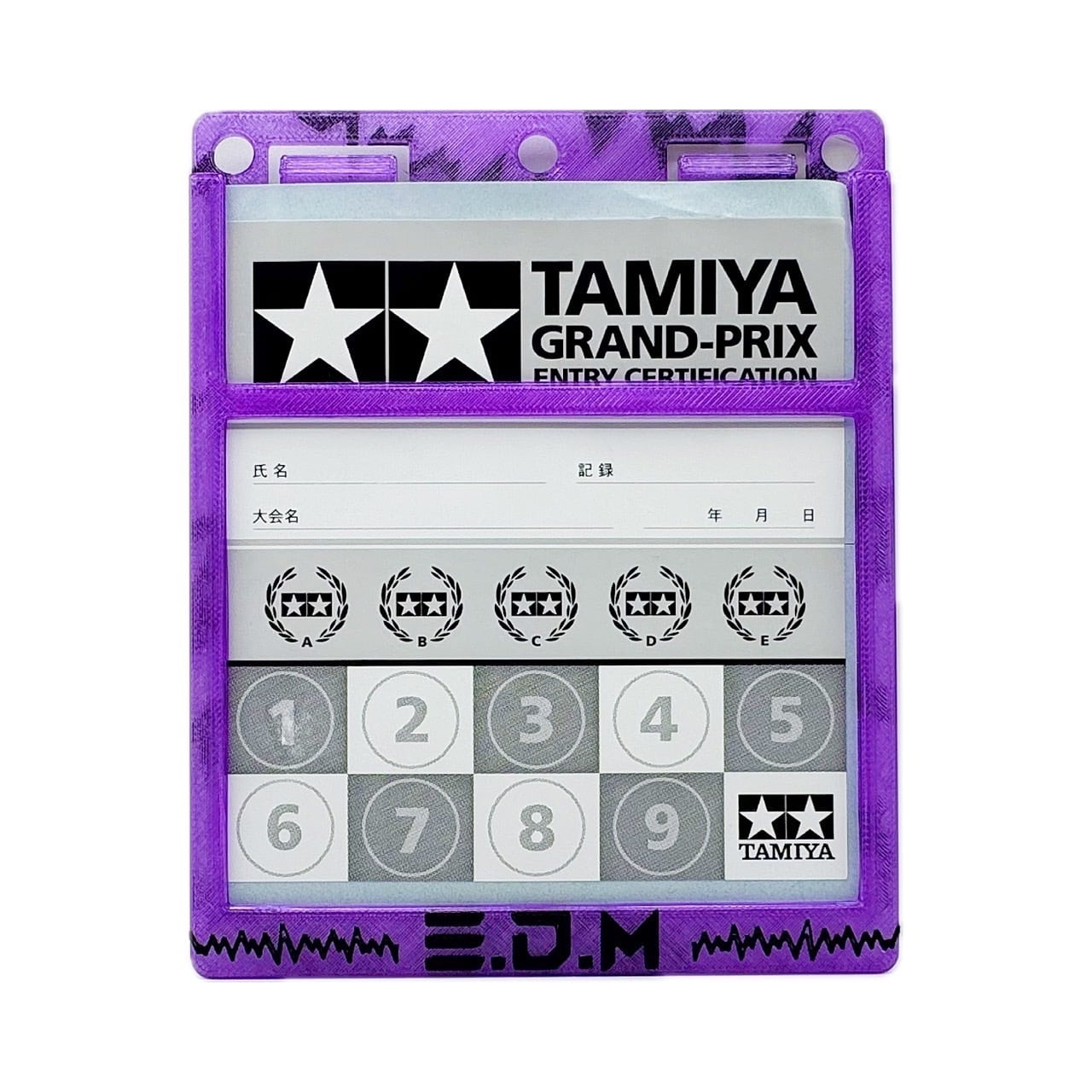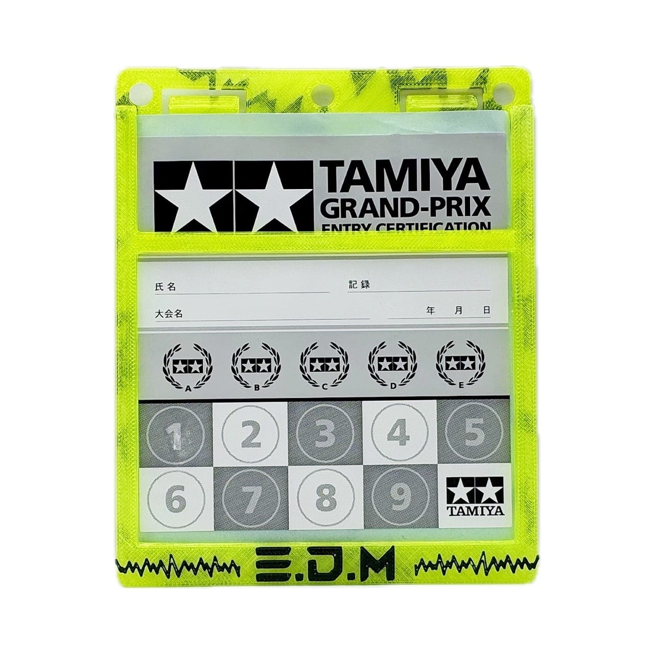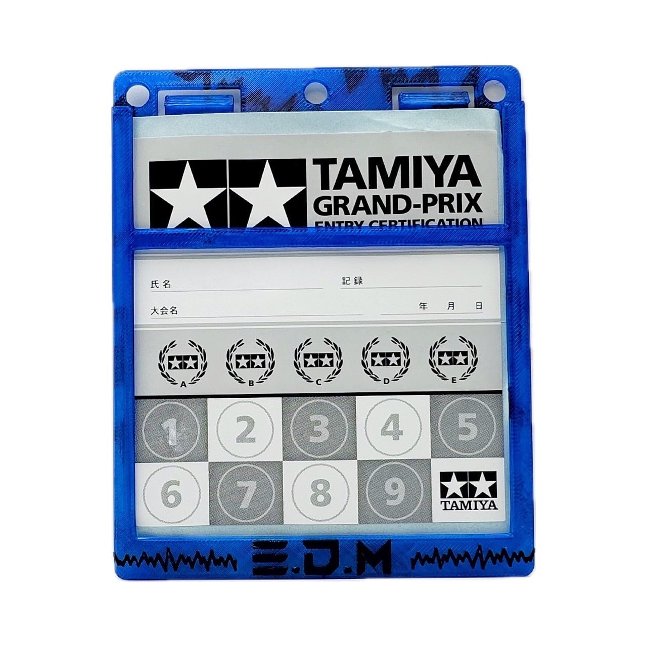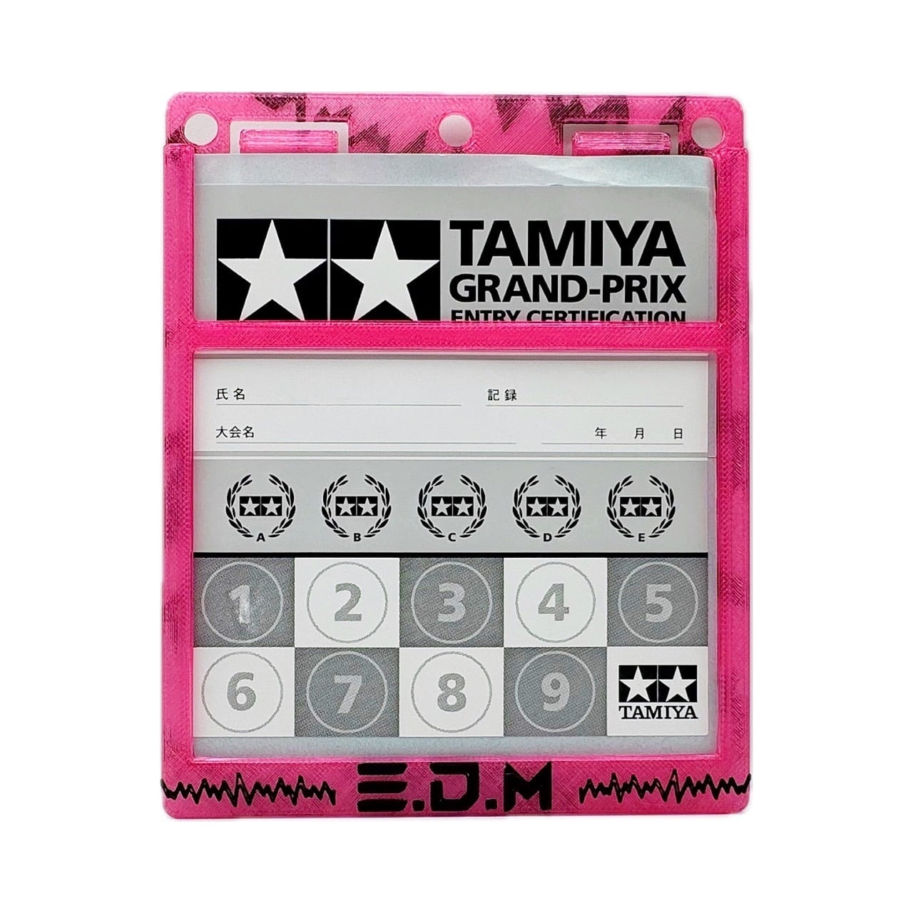 TAMIYAミニ四駆公式大会の際に渡されるエントリーシールを軽量で形を崩さず持ち運ぶホルダーです。