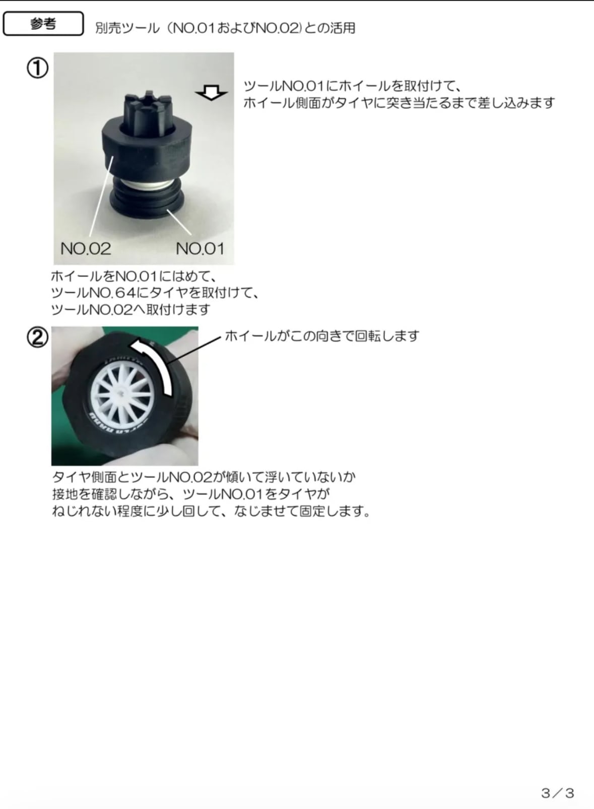 ツール取扱い説明書にホイール対応表を掲載して
