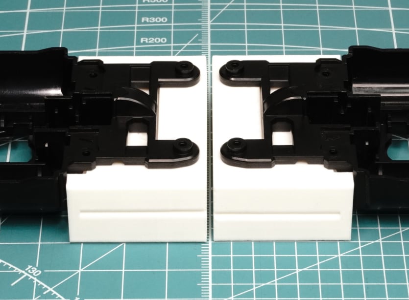 MSシャーシ/フレキシブル改造のセンターシャーシ加工において、ユニットをストロークさせるために干渉する部位をカットする治具です。