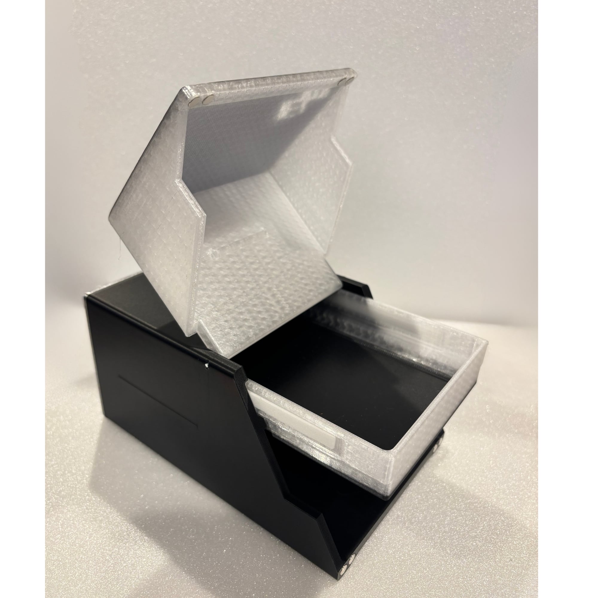 ※トレー装着時はミニ四駆コンテナ内寸リアから34mmまでが高さ70mmあります。そこから先端までは高さ50mm、壁ブレーキ、壁ローラー回避する用にトレーを設計してますが、お客様のマシンのセッティング状況ではトレーを着脱してご利用くださいませ。