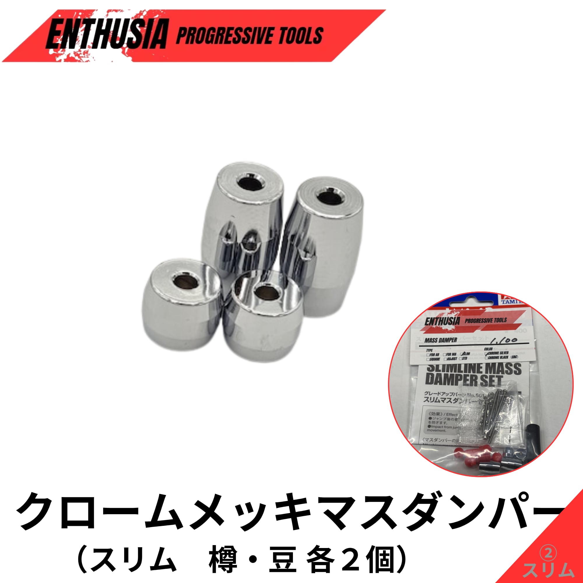 商品名:クロームメッキマスダンパー(スリム 樽・豆 各2個入)